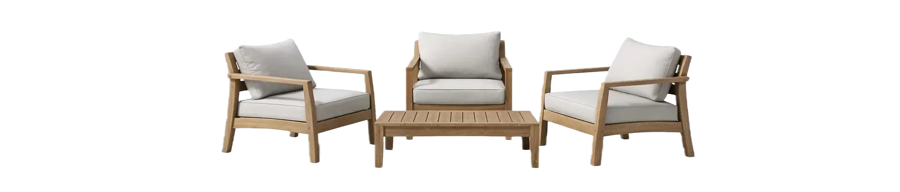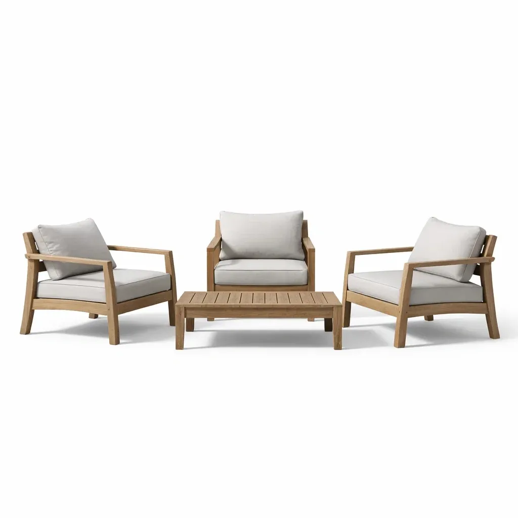 Set da conversazione in legno di teak con tre poltrone e tavolino